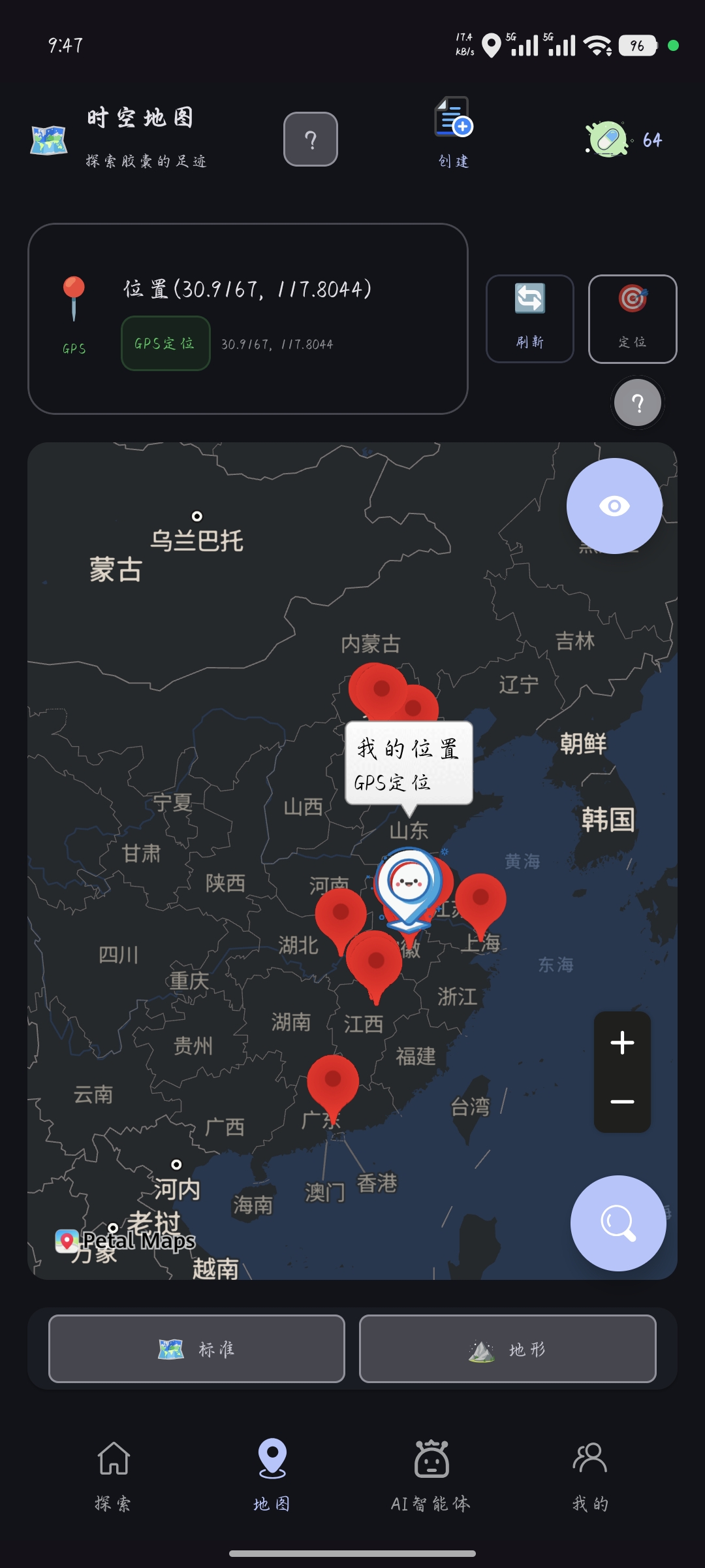 GPS模式:真实世界中的真实记忆,每三分钟自动刷新,精准捕捉你身边的胶囊