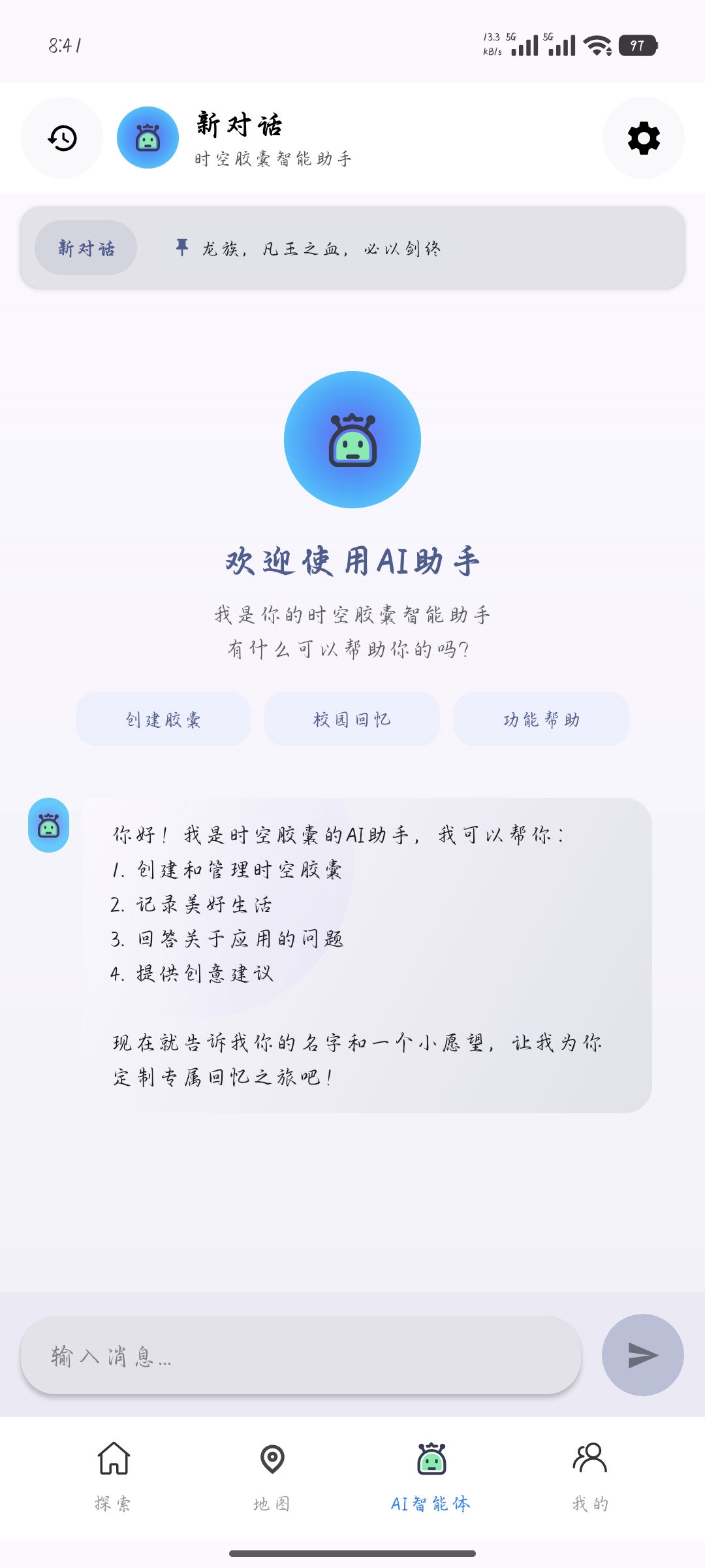 "时空胶囊"App将数字记忆与现实世界的地理位置深度绑定,为用户创造独特的记忆珍藏体验。您可以在特定的真实地点(如校园、公园、旅行目的地等)创建并封存数字记忆胶囊,内容可以是文字、图片等多媒体形式。(部分功能后期会逐步上线)
